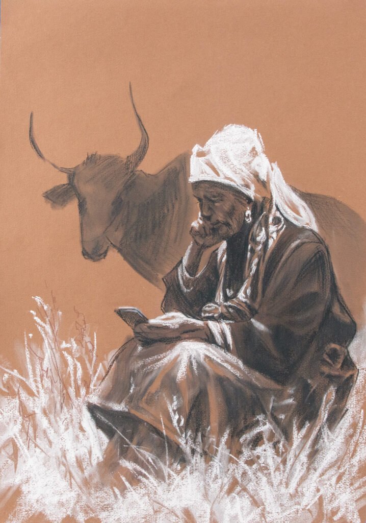 Pastel and charcoal pencil on toned paper